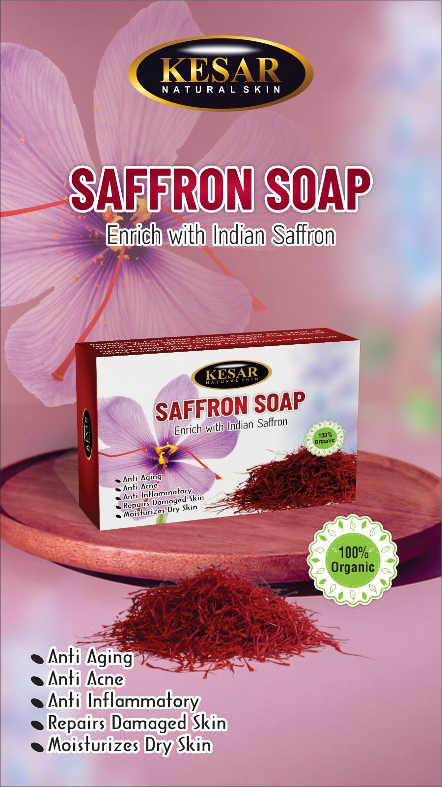 - Saffron, a natural brightening agent, works to lighten dark spots, even out skin tone, and bring out your skin’s natural glow. Regular use of Kesar Saffron Soap helps to achieve a more radiant, luminous complexion.